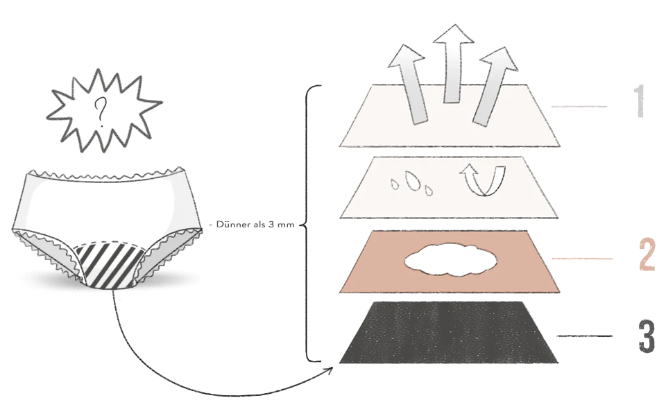 Du musst den Slip also viel seltener wechseln als zum Beispiel Binden oder Tampons. Du kannst ihn sogar problemlos bis zu 12 Stunden und auch über Nacht tragen.